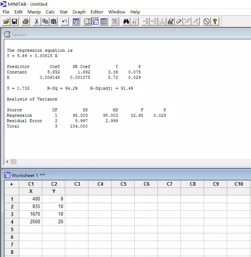 ?、?利用Minitab軟件進(jìn)行回歸分析,確定公式的可靠性。