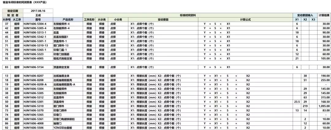 ② 按產(chǎn)品、按工序逐一測算標(biāo)準(zhǔn)時間;
