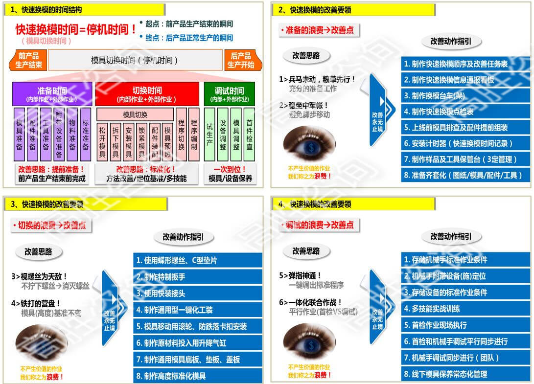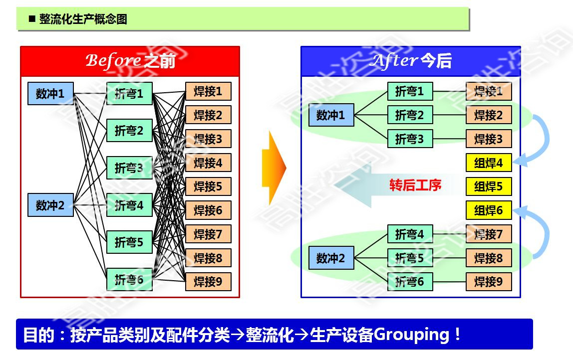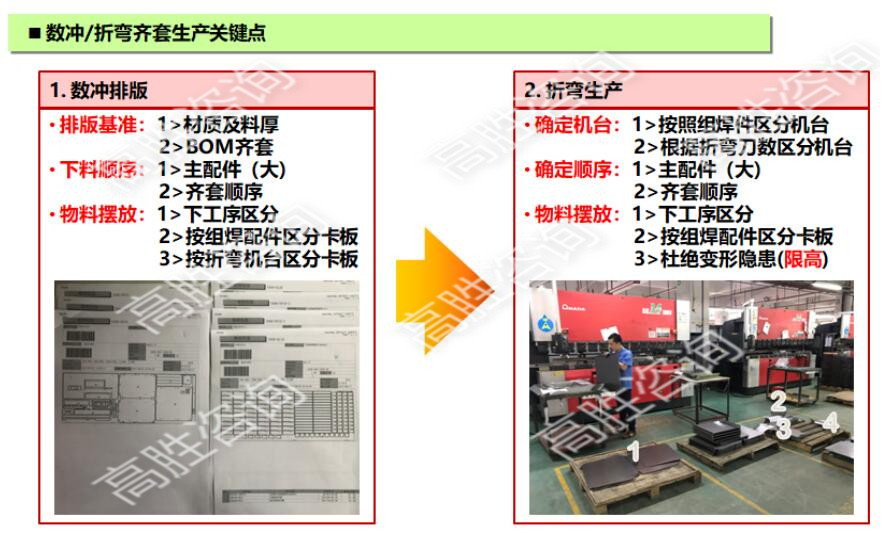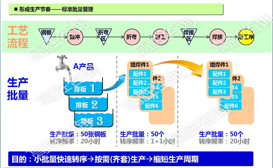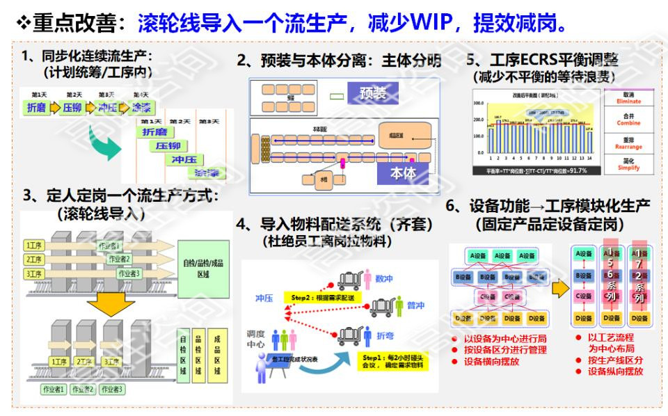 總而言之,所有的創(chuàng)新都是基于企業(yè)精益生產(chǎn)的沉淀和積累,均衡化生產(chǎn)和整流化是顛覆傳統(tǒng)生產(chǎn)方式的一個重要蛻變;根據(jù)高勝咨詢輔導(dǎo)的多家鈑金企業(yè)實戰(zhàn)經(jīng)驗,精益生產(chǎn)改善通常用到以下六個著眼點,案例分享如下: