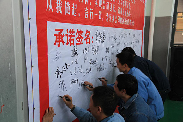 會(huì)議最后樂(lè)善機(jī)械總經(jīng)理郭總發(fā)表講話宣布管理變革領(lǐng)導(dǎo)小組成員名單、稽核小組成員名單并發(fā)布組織結(jié)構(gòu)調(diào)整通知、管理變革授權(quán)書,授予高勝項(xiàng)目組經(jīng)營(yíng)管理、人事任命、薪酬調(diào)整的建議權(quán)。他在講話中強(qiáng)調(diào)推行管理變革是樂(lè)善實(shí)現(xiàn)發(fā)展戰(zhàn)略的必由之路、必選之路,也是永無(wú)止境的萬(wàn)里長(zhǎng)征,他呼吁樂(lè)善所有人員要一步一步、腳踏實(shí)地、努力工作,將公司打造成為高品質(zhì)、高效益、低成本、充滿活力的先進(jìn)企業(yè),堅(jiān)決牢記和貫徹的推進(jìn)管理變革,以脫胎換骨的精神,鑄就樂(lè)善新的輝煌。