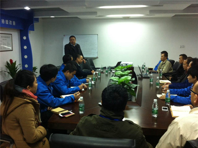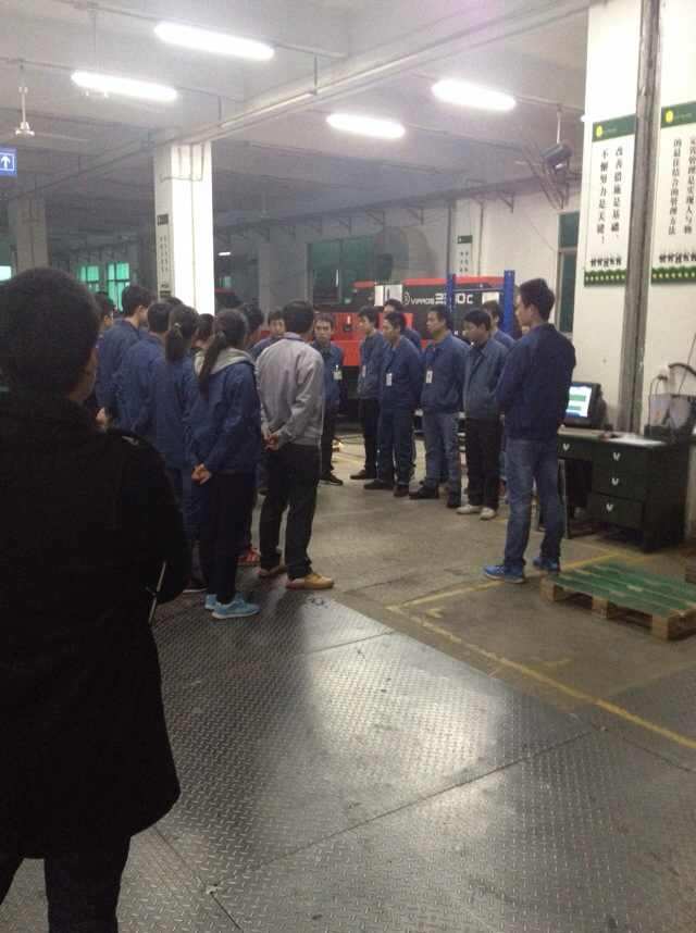 上午7時40分,格雷特通訊來到華陽通時,我司華陽通項目組老師及華陽通高層已經(jīng)等候在公司門口,華陽通對格雷特一行的參觀表示熱烈的歡迎,并表示希望格雷特一行能從本次參觀中有所收獲。在華陽通看完整個班組早會現(xiàn)場以后,格雷特所有人員都深深的震撼住了。參觀過后大家回到會議室,雙方高層面對面的深入交談工作心得,楊老師并對華陽通項目組做總體介紹以及班組建設(shè)的推行分享。分享交談過后,格雷特一行繼續(xù)參觀鈑金車間、焊接車間、裝配車間以及噴涂車間。