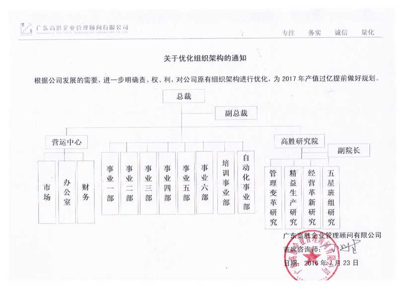 高勝咨詢,一直把“打造中國口碑最好的咨詢公司”為公司文化的主旋律,這個美好的愿景督促著每一位高勝人,用百分百的努力向著這個目標(biāo)前進(jìn)。高勝咨詢,一直把“打造中國口碑最好的咨詢公司”為公司文化的主旋律,這個美好的愿景督促著每一位高勝人,用百分百的努力向著這個目標(biāo)前進(jìn)。