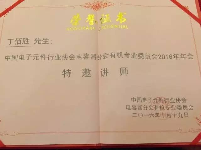 2016年10月19日,由汕頭高新區(qū)松田實(shí)業(yè)有限公司和中電元協(xié)電容器分會(huì)有機(jī)專業(yè)委員會(huì)主辦的“中國(guó)電子元件行業(yè)協(xié)會(huì)電容器分會(huì)有機(jī)專業(yè)委員會(huì)2016年年會(huì)”在汕頭市君華海逸酒店舉行,廣東高勝企業(yè)管理顧問(wèn)有限公司首席咨詢師丁佰勝老師作為特邀講師出席了此次大會(huì),還有來(lái)自全國(guó)各地的近兩百位會(huì)員代表歡聚一堂,參加此次主題為新思維、新視角、新征程的盛會(huì)。