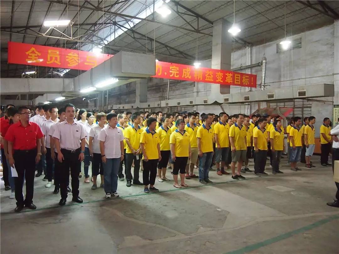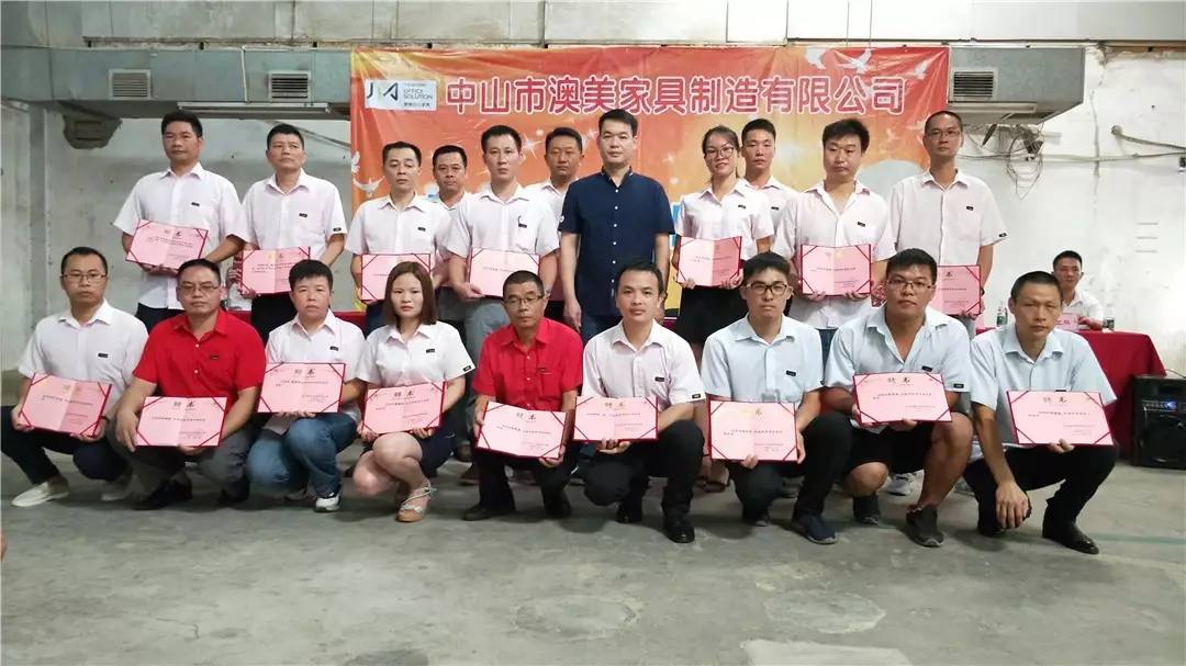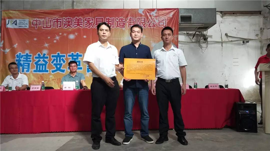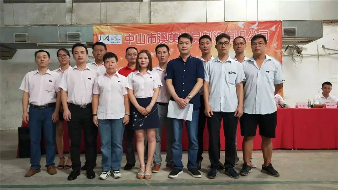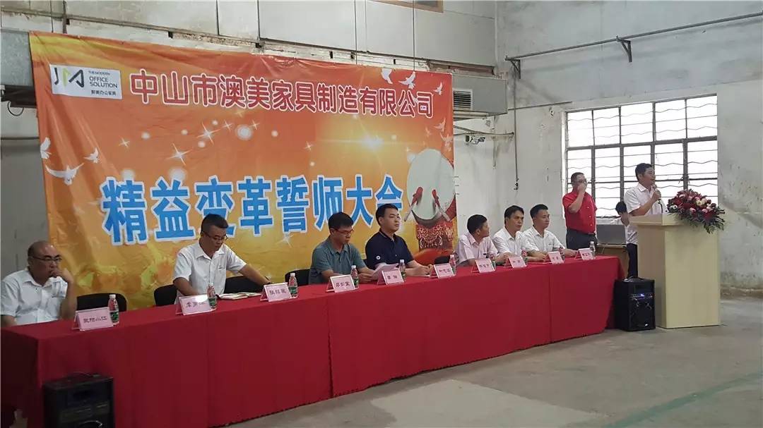 2017年8月11日,中山市澳美家具制造有限公司精益變革誓師大會隆重召開。澳美董事長李瑞、總經(jīng)理葉志濃、生產(chǎn)副總?cè)~蔚、行政副總林俊宇、高勝咨詢事業(yè)七部總經(jīng)理張紹裴老師、事業(yè)七部副總虞勇洋老師、高級咨詢師何易老師、楊衛(wèi)平老師、市場總監(jiān)歐陽小江老師、澳美中高管理層及全體員工共同出席了此次大會。
