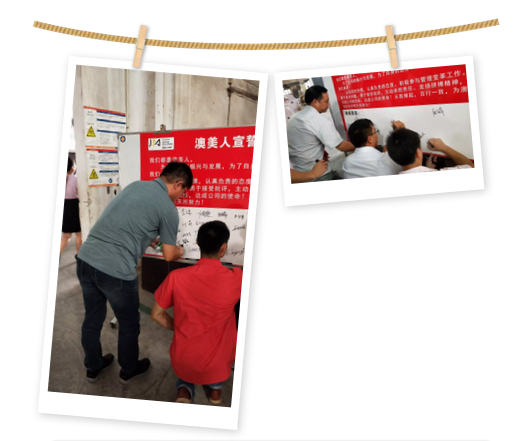 澳美羅主管承諾:“堅決支持公司的變革決策,堅決執(zhí)行高勝老師布置的任務(wù),勇于管理自己、否定自己,堅決改掉自身壞習慣,為澳美的美好明天努力奮斗?!?/p>