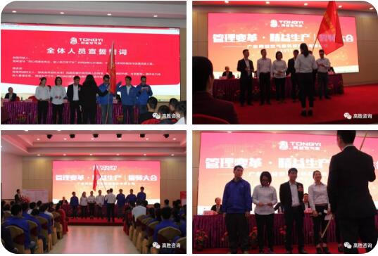 2017年12月6日下午2點(diǎn),廣東同益空氣能科技股份有限公司舉辦精益生產(chǎn)、管理變革啟動大會,同益總經(jīng)理唐旭初、董事長助理米萬春、分公司副總經(jīng)理韋子志、高勝咨詢副總裁廖宜尚老師、事業(yè)二部總經(jīng)理杜滔老師、副總經(jīng)理羅正肖老師、高級咨詢師邱勇老師、市場總監(jiān)李敏儀老師、十三位優(yōu)秀的供應(yīng)商代表以及全體同益員工共同參與了此次大會。會議旨在樹立變革決心,提升全體人員的變革士氣。