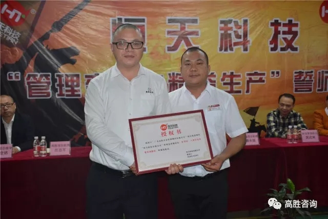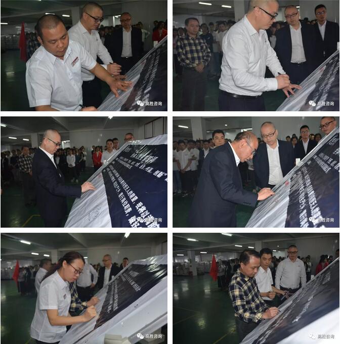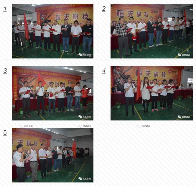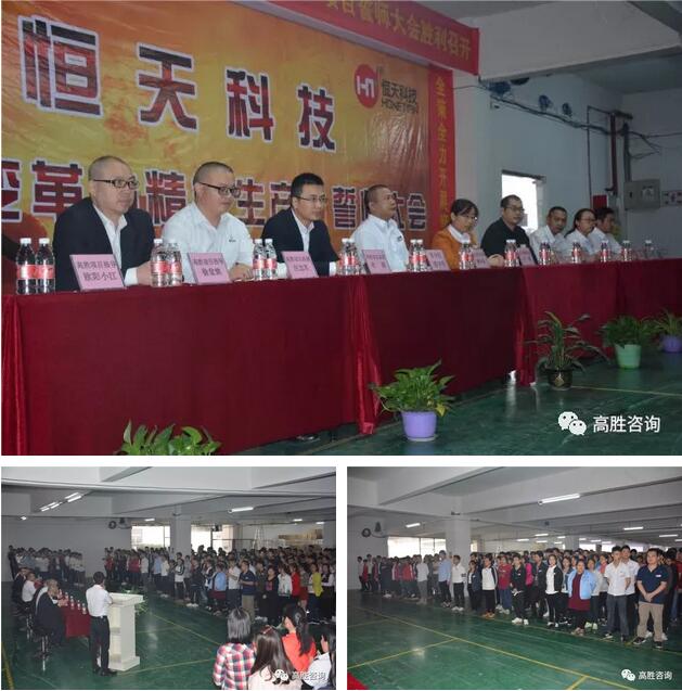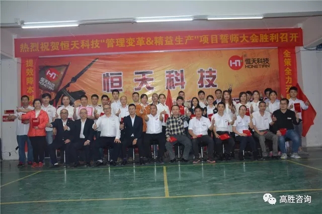 2018年3月20日,江門市恒天科技有限公司舉辦精益生產(chǎn)、管理變革項(xiàng)目誓師大會(huì)。恒天常務(wù)副總賴永強(qiáng)先生、總經(jīng)理助理許燕女士、資材部經(jīng)理高國(guó)慶先生、制造部經(jīng)理張強(qiáng)先生、倉(cāng)庫(kù)主管吳相遠(yuǎn)先生、企管部經(jīng)理黃雪鳳女士、研發(fā)部總監(jiān)黃武榮先生、研發(fā)部經(jīng)理伍英杰先生、高勝咨詢合伙人杜滔老師、高級(jí)咨詢師汪忠軍老師、徐堂銘老師、市場(chǎng)總監(jiān)歐陽(yáng)小江老師、恒天管理層及全體員工共同參與了大會(huì)。
