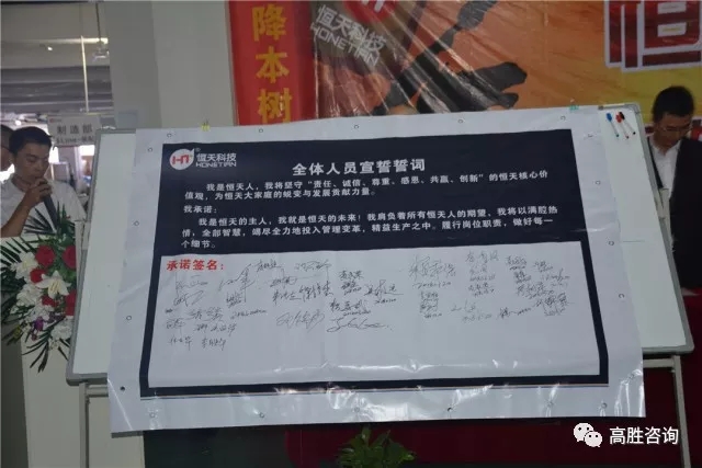 高勝咨詢與恒天的攜手標(biāo)志著恒天已步入新的發(fā)展階段,此次的變革對(duì)于恒天來(lái)說(shuō)是個(gè)艱巨的考驗(yàn),樹(shù)立堅(jiān)定信心,改變舊思想,舊傳統(tǒng),全力配合高勝老師,學(xué)習(xí)新方法,只有改善,才能成長(zhǎng)!