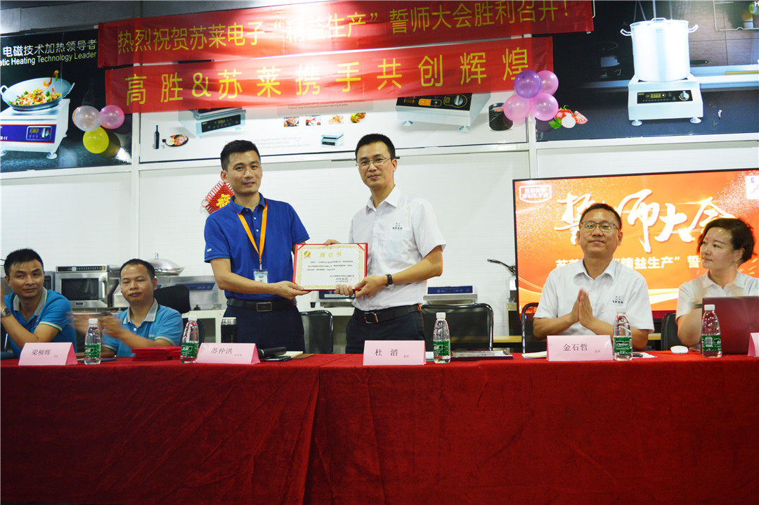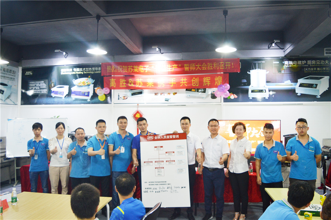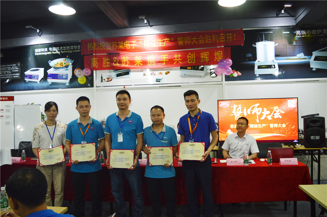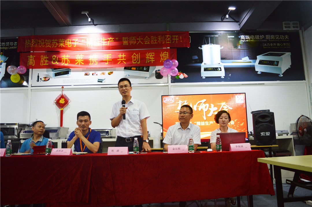 2019年6月10日,佛山市順德區(qū)蘇萊電子有限公司舉辦精益生產(chǎn)項目啟動誓師大會。蘇萊總經(jīng)理蘇總、盧總監(jiān)、廣東高勝總經(jīng)理杜滔老師、資深咨詢師金石哲老師、市場總監(jiān)李俊清老師、蘇萊管理人員及全體員工共同出席本次大會。本次大會由盧總監(jiān)全程主持。