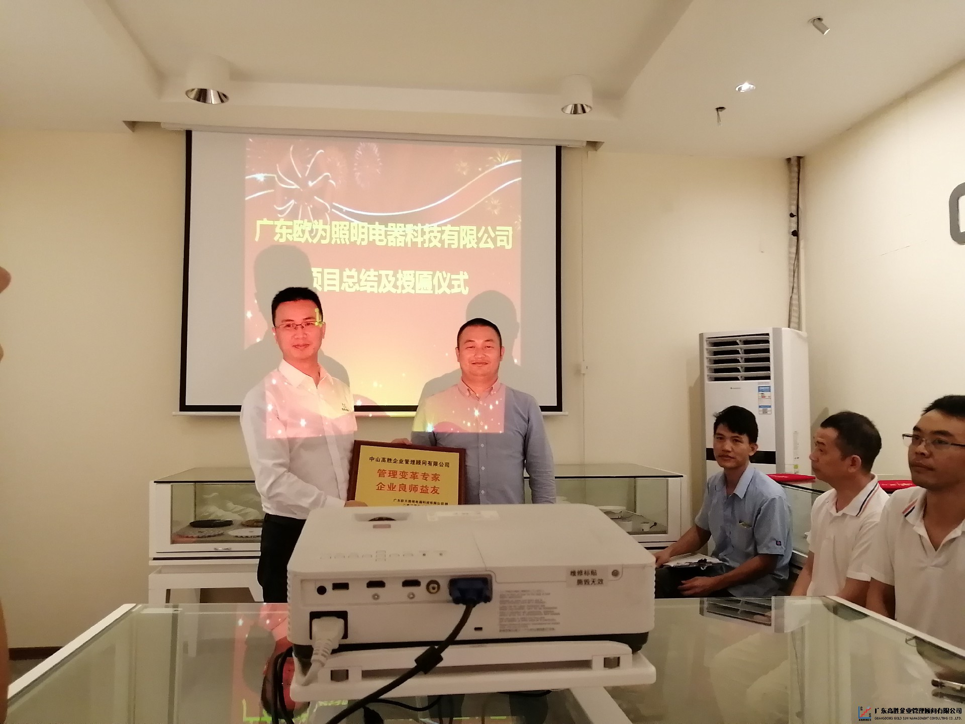 歐為汪先生為高勝咨詢頒發(fā)牌匾